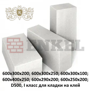 Блок газосиликатный 600x300x250 «Могилев Газосиликат» (D500, I класс)